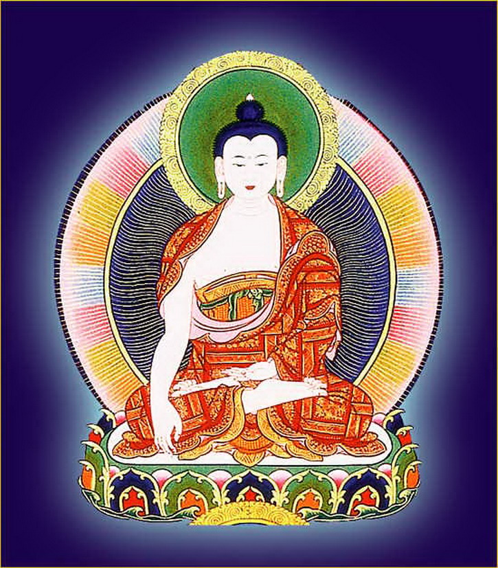 东北方不空义世界之光德佛,身蓝色,结说法印,顶礼此佛可消除以嗔恚所起之罪障。