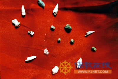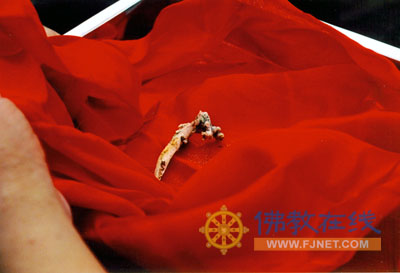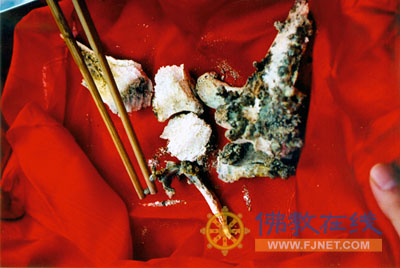 筷子夹住的是一枚七彩舍利。全部舍利数量有数百枚之多