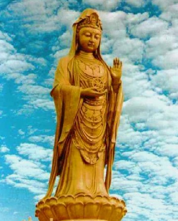 ‘无尽意!观世音菩萨摩诃萨威神之力,巍巍如是若有众生,多于淫欲,常念恭敬观世音菩萨,便得离欲。若多嗔恚,常念恭敬观世音菩萨,便得离嗔。若多愚痴,常念恭敬观世音菩萨,便得离痴。无尽意!观世音菩萨,有如是等大威神力,多所铙益,是故众生。常应心念。若有女人,设欲求男,礼拜供养观世音菩萨,便生福德智慧之男。设欲求女,便生端正有相之女,宿植德本,众人爱敬。无尽意!观世音菩萨有如是力,若有众生恭敬礼拜观世音菩萨,福不唐捐,是故众生,皆应受时观世音菩萨名号。’