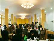 中午,参访团一行在西园寺素菜馆用斋。斋前,普仁大和尚应邀为大众作了开示,勉励大众通过学佛调整心态,以积极热诚而又无所得的态度对待工作和生活,自利利他,自觉觉他。