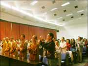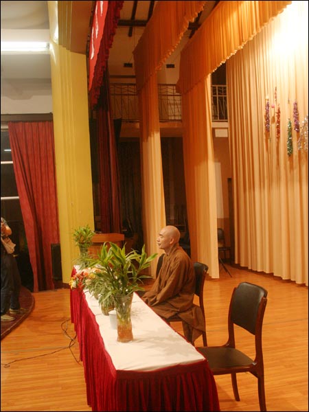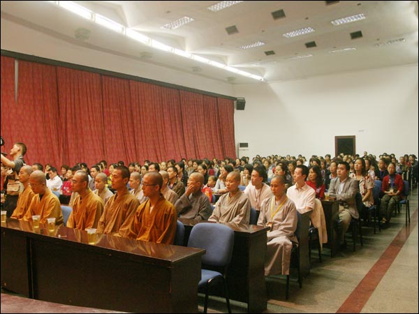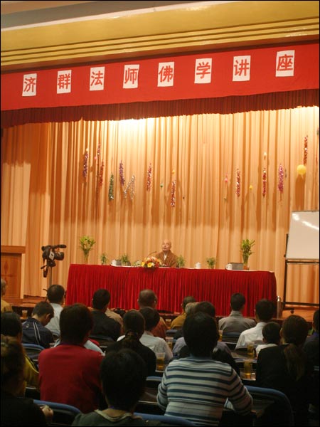 晚上,济群法师为参访团一行作了佛学讲座。讲座共进行两天,分别围绕“暇满人身”和“因果”为大众作了精彩开示。讲座结束,法师还一一回答了大众的修学疑问。座无虚席的讲堂内,时时响起热烈掌声,气氛极为活跃。