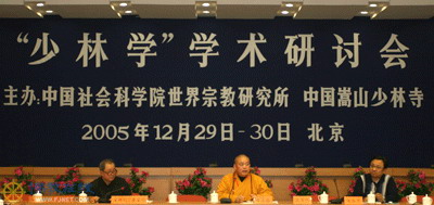 佛教在线12月31日讯 2005年12月29日—30日,“少林学”学术研讨会于中国社会科学院隆重召开,会议由中国社会科学院世界宗教研究所、中国嵩山少林寺主办,各界学者一百多人参加了本次学术研讨会议,与会者对“少林寺文化传承:保护与利用”、“少林寺历史与文化”、“少林寺与武术及艺术”、“少林寺的现状与少林学”等多个主题进行了热烈讨论,中国佛教协会副会长、少林寺方丈永信法师到会做了主题发言。