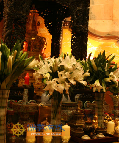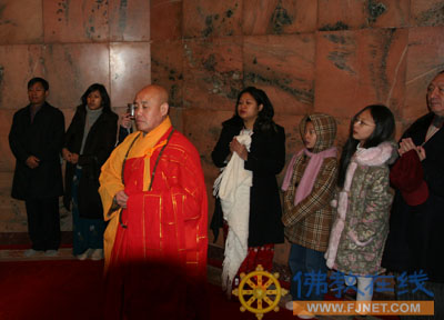 缅甸客人在演觉法师和常藏法师的陪同下礼拜佛牙舍利