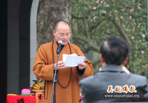 杭州市佛教协会会长光泉法师在开茶仪式上讲话