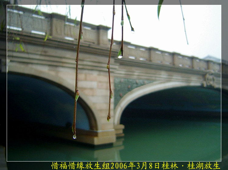 原定是在桃花江放生的,一早上都在下雨,怕桃花江边泥巴太多路滑,就改了地点,在观漪桥洞下
