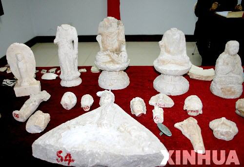 3月8日,河南省古代建筑保护研究所召开新闻发布会称,在安阳慈源寺保护工程过程中,出土了十几件唐宋时期的精美佛教造像、大量瓷片、一件北宋“大观四年”经幢及早期建筑构件。这是新闻发布会展示的部分慈源寺出土文物。