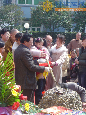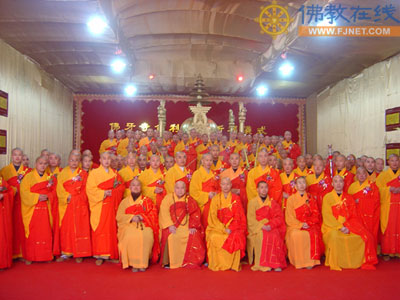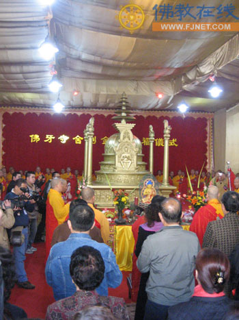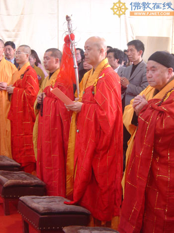 这次仪式新加坡佛牙寺请来了江、浙、沪一些诸山长老及大德法师共计120人。从新加坡来的信徒大约100余人,内地一些信徒约300余人参加此次仪式。