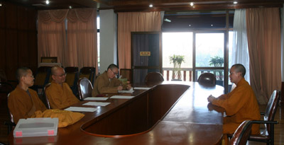 新加坡方面有教务长传贤法师、副教务长传诚法师、教务主任传静法师、总干事吴毅进居士、光明山人事部负责人钟志成居士来南普陀寺进行具体的招生工作。