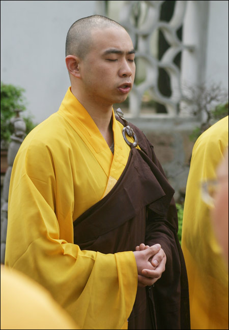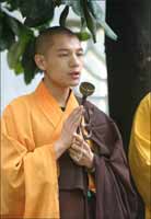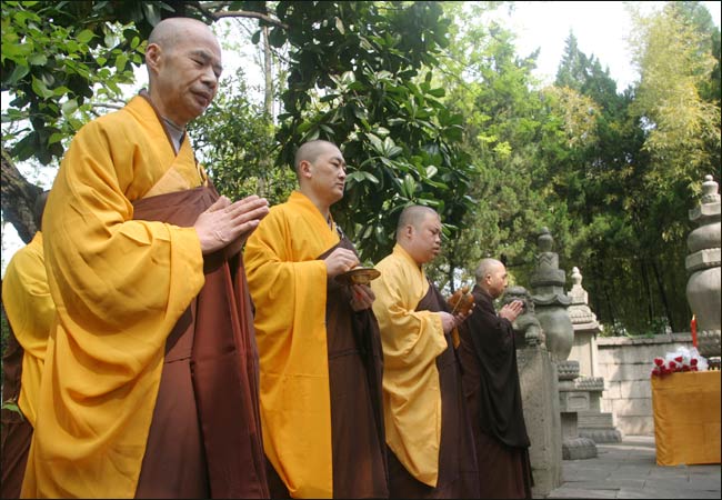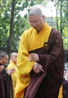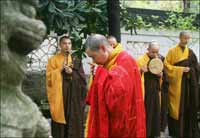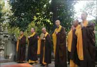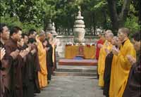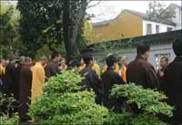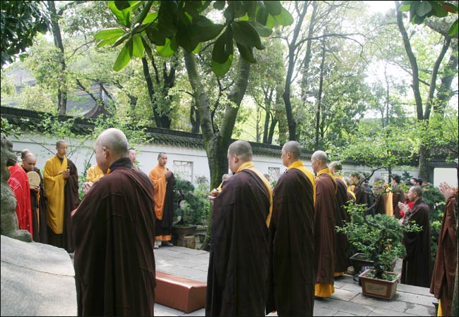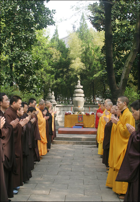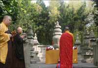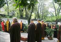 西园寺网站: 2006年4月5日,是传统的清明节。昨夜的一场春雨,将西园寺清洗得格外明净。上午九点半,僧众列队前往塔院,上供并礼拜祖师灵塔。诵经、梵唱声中,僧众及居士次第顶礼灵塔,场面十分庄严。