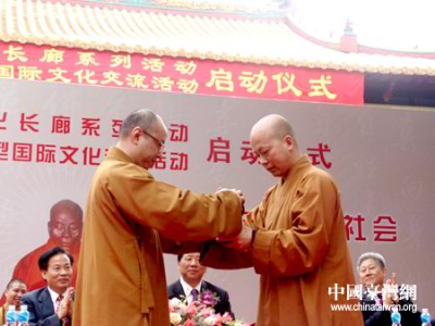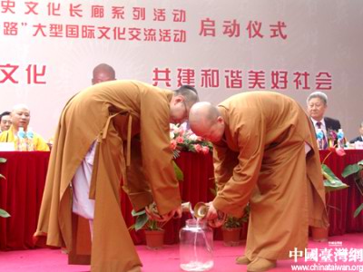 中国台湾网报道:大型国际文化交流活动——“重走唐僧西行路”的启动仪式今天(21日)上午9点在羊城千年古刹光孝寺隆重举行。国家宗教局局长叶小文,国家、省市相关部负责人、佛教团体以及海峡两岸的高僧出席了仪式活动。活动甄选出的两位西行高僧——来自江西云居山真如寺的明贤法师和来自台湾佛光山的慧宽法师首度亮相。