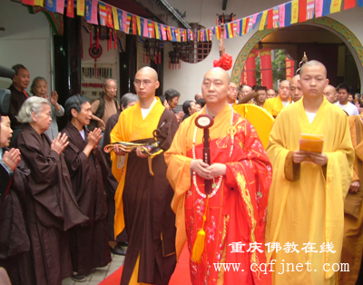 参加升座法会的领导有:国家宗教局一司李云华女士、重庆市政协王孝询副主席、重庆市民宗委谭建祥主任、中共渝中区委刘隆铸书记、中共重庆市委统战部罗静虹副部长、重庆市政协民宗委丁载宽主任、杨耀建副主任等领导。