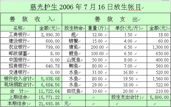 将此放生之功德回向十方三世佛菩萨!愿十方三宝慈悲加持,怜悯护念,并祈愿所放之众生,即放之后,永不遭遇网捕吞杀,获尽天年,速生净土!并愿捕生人等,回心向善,顿悟三世因果、及生佛心性平等无二之理、解冤解结,救世救生,发菩提心,行菩萨道!