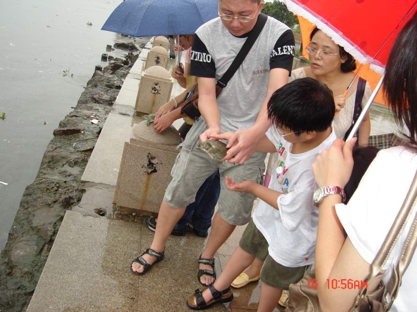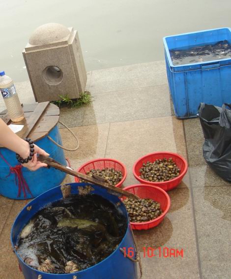 慈光经常去放生的黄沙码头,因为逐渐有其它放生组去放生,广州本地的几大寺院,几大居士团体,都定期或不定期在黄沙放生,慢慢的,有些渔船也闻讯而来,于是慈光最近不在黄沙放生,改在一些新开辟出来的地点,然后将不定期改变放生地点.以期放生活动更加如理如法.