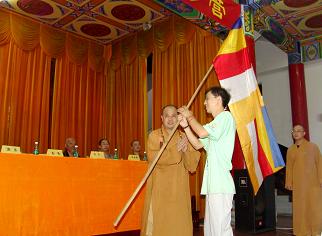 省佛协副秘书长王立军先生为营员授营旗