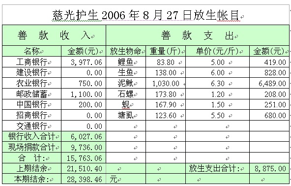 广州慈光护生2006年8月27号员村放生总结