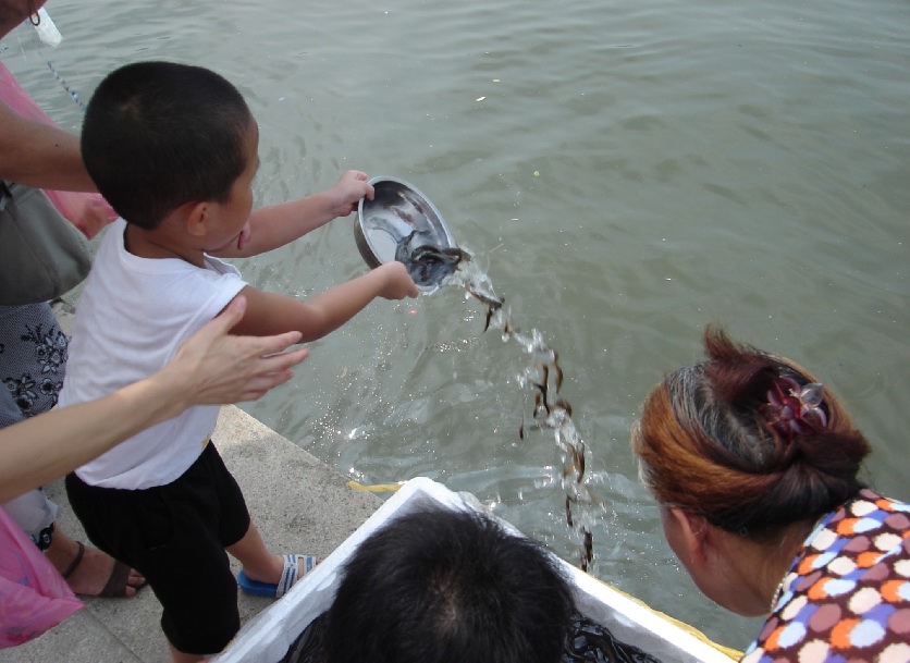 这次放生,可以说年龄从7岁到70岁都有,其实一直都有这样的年龄差距,还有3岁的呢,只是几天特别明显,特别多,从图片可以看到不少可爱的小朋友,不少可敬的老人家,猛烈的太阳,并没有减少他们的热情!我们的热情,比太阳更热!