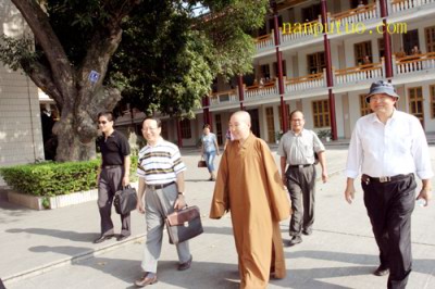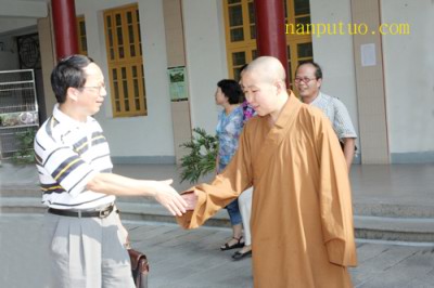 座谈时法源法师为陈耀中副主席等一行,介绍了闽院的历史、僧源的来处以及闽院女众部法师、学僧的修学生活和作息等大致情况。谈到佛教教育问题时,法源法师说:佛学院学生与社会学生有其不同之处,佛学院的学生除学习外还必须过好宗教生活,如:“上殿、过堂、出坡”等等。