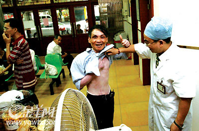 从2004年12月28日开诊至今,这个慈善门诊已经发放了1720本病历,累计看病人次达到19696人次,门诊量最多的一天有117人。从去年开始,有资格免费看病的人又扩大了一小圈:没领到两证,而又确实困难的广州市肢残人员,每逢周二、三、四病人较少的时候,可以得到15个就诊名额。