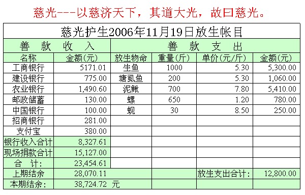 好几位师兄发短信来问,明天放生是否继续,我只简单回了句:放心,照常举行!