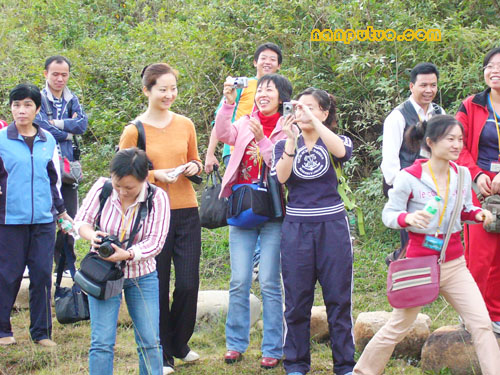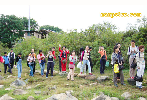 随后大家在济群法师等几位法师的带领沿着潺潺的山涧溪流,踏着水中岩石,溯流而上……。同学们在欢声笑语中;在与自然忘我的融摄下,体验“林中一片树叶飘落”的自然无着。