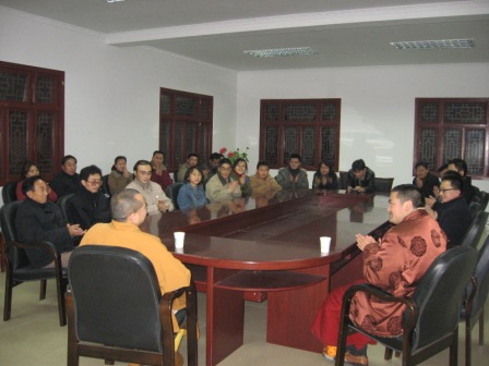 重庆佛教在线讯 2006年12月10日晚,重庆华岩寺民主管理委员会会议室,市佛教协会副会长,重庆佛学院常务副院长道坚法师应重庆市学佛沙龙二众弟子的迎请,就沙龙学佛要落实中佛协民宗委提倡的“人间佛教”精神,发起实修普贤行愿的倡议,给予了肯定。并鼓励大家发菩提心,行菩萨道,庄严国土,利乐有情。