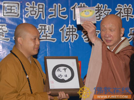见忍法师与日本临济宗妙信寺派圣方院住持则竹秀南长老交换礼物