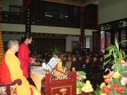 何燕同学是重庆通信学院网络工程专业04级的学生,自幼父母离异后无人照顾,与婆婆相依为命,没有任何经济收入,家庭生活条件十分困难,何燕自小学习成绩优异,在校一直被评为“三好学生”、“优秀学生干部”等,荣获过二等奖学金等。但因经济原因却无法继续学业,在好心居士的建议下,何燕同学把求学的希望寄托在了文教基金会的帮助,道坚法师及基金会的工作人员在接到何燕同学的申请后,经过仔细的调查研究,在最短的时间内给予答复,慈悲资助何燕同学2006年学费8000元直至毕业。 捐赠会现场听众们也深受感动,纷纷自发捐钱,整个场面非常感人。 对于华岩文教基金会的资助,何燕非常激动,感谢道坚大和尚的悲悯之心及社会各界好心人的热心帮助。并表示明年将会到德格更庆寺孤儿院去支教,以回报佛陀,回报社会,回报资助过她的所有好心人。 重庆市华岩文教基金会是由华岩寺方丈道坚法师倡议成立,自成立以来,积极扶贫,济困,悯孤,养老,先后资助多名贫困学生完成学业,慰问儿童福利院,在四川甘孜道孚县修建希望小学,向四川甘孜德格县更庆寺孤儿院捐资,向西南政法大学等三所高等院校成立“华岩奖学金”等,取得了较大的社会影响,让社会各界人士感受到佛陀的慈悲,感受到道坚大和尚的利生济世之心。 (华岩弘法)