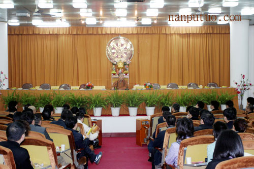 8时许,由则悟大和尚于南普陀寺讲堂为大家作开示。首先大和尚代表两序大众对来自中国著名学府复旦大学的教授及EMBA各位精英的到来表示热烈欢迎。
