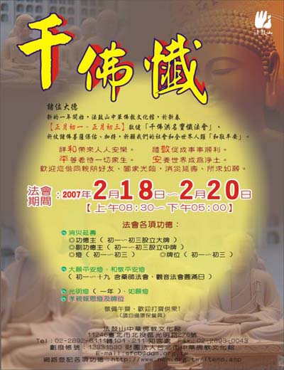 法会时间:2月18日(日)~2月20日(三) 上午08:30~下午05:00
