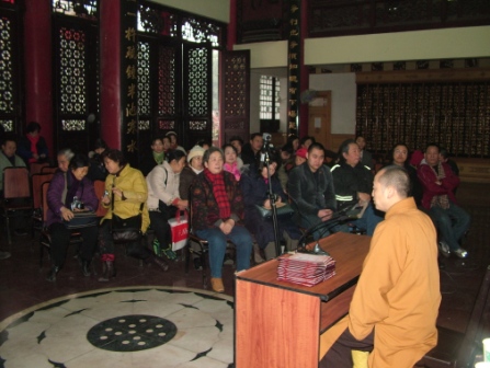 负责弘法事务的普济法师热情的接待了前来参观并致力宣传优秀传统文化的“老同学”们。同学们围绕重庆华岩寺自道坚法师升坐以来开展的一系列弘法利生活动给予了肯定,特别是同过各种形式弘扬优秀的中华民族文化大加赞赏。很多的老年朋友亲自参与了华岩寺的中华正信读经会、英才传习舍,无尽学社等继承和弘扬中华民族文化的组织活动。