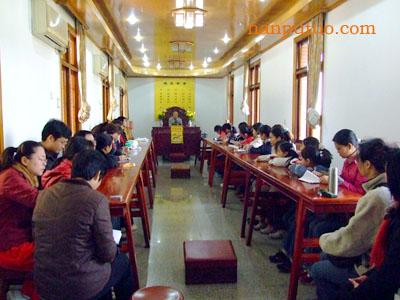 中午弘法班同学在虎溪岩寺用过午膳,在斋堂听济群法师开示。济群法师勉励同学们真实修行,观照自己的起心动念,以无我破除贪嗔痴烦恼,用智慧观照内外明彻,识自本心。随后静安法师简略的对本学期做了总结,提出下学期课程安排和改进建议,希望把弘法班办成立体化,教理和生活以及实修相结合的教学模式,并希望学员们增加交流,分享学佛心得。