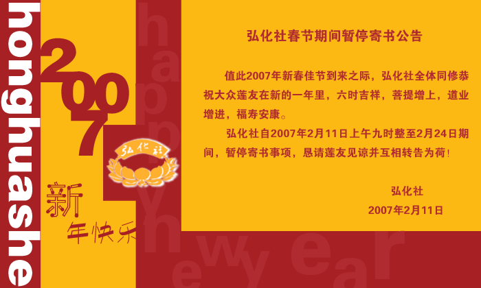 弘化社春节期间暂停寄书公告