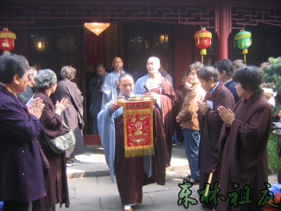 西园戒幢律寺普仁大和尚向法师一行赠送礼物 |