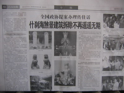 它成为政协十届全国委员会第三次会议第2024号(城乡建设类第195号)提案,名为《还什刹海人文自然和谐风貌》。