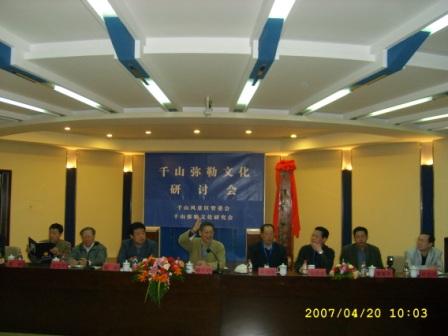 2007年4月21日,鞍山千山风景区举行了“千山弥勒文化研讨会”,会议由楼宇烈教授主持,会议主题为如何进一步推动千山弥勒文化的研究与弘扬。千山风景区管委会主任张群致辞,感谢学者们的支持并对举办此次会议宗旨作了说明。原千山风景区管理局局长关洪本为与会者讲述了当年发现这一大佛的过程。著名学者方立天教授、何劲松教授、黄夏年教授、徐文明教授、温金玉教授、李四龙教授、赵超教授、周齐教授、李翎教授、王景明教授、华方田教授等发言。