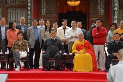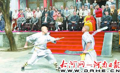 最精彩的一幕是在方丈室外,一场正宗的少林功夫表演让客人大开眼界。少林寺童子功,象形拳,二指禅,刀、枪、剑、鞭、棍等少林功夫表演,融内功与外功为一体,节奏鲜明,刚劲有力,虎虎生威,连战及夫人等不时为武僧们高超的武功鼓掌叫好。连战高兴地说:“少林功夫明心见性,虎虎生风,真是名不虚传。少林寺是中国历史悠久的寺庙之一,名扬中外,受到成千上万的人仰慕参拜。今天我能来到这里,了却了我心中长久以来的愿望。”