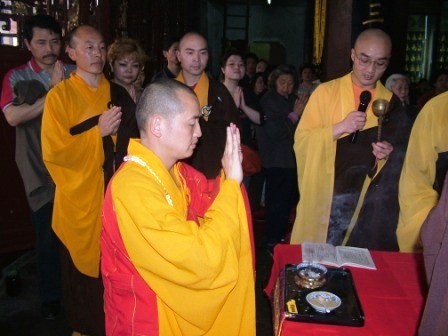 在大雄宝殿隆重举行的三皈五戒法会中,道坚法师为大众开示到,三皈就是皈依佛,皈依法,皈依僧。皈依佛不堕地狱,皈依法不堕饿鬼,皈依僧不堕旁生。