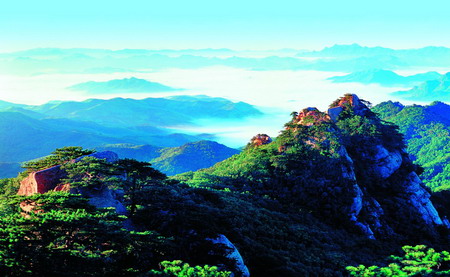 “南海八千路,辽东第一山”——鞍山千山风景区是首批国家风景名胜区、全国文明风景旅游区、国家AAAA级旅游区,自古就被誉为“东北明珠”、“东北四大名山之首”。当年一曲唱遍大江南北的《木鱼石的传说》中的木鱼石就深藏在千山,而国内第一部反特影片《古刹钟声》中的古刹就是千山的龙泉寺。“欲向青天数花朵,九百九十九芙蓉”,千山一年四季景色怡人,春天梨花飘雪,香气漫谷;夏天松涛阵阵,满山滴翠;秋天漫山红叶,层林尽染;冬天银妆素裹,玉树琼枝。千山虽无五岳之雄伟,却有千峰之壮美,无峰不奇、无石不峭、无寺不古,无处不幽,佛道两教共处一山,和睦相处,共生共荣。龙泉寺、无量观等九宫八观、五大禅林、十二茅庵散落于群山之间,晨钟暮鼓、香烟缭绕、木鱼阵阵、佛乐飘飘。世界上最大的天然石佛——“千山弥勒大佛”坐落于群山之间,此佛是由一座山峰自然形成,佛身高70米,臂宽46米,头高9.9米,耳长4.8米,他五官清晰,法相庄严,由山洞形成的佛脐可容两人,胸前形成的佛珠隐约可见,大佛呈坐姿,左手五指分开置于膝上,右手半握拳,肩负布袋,面西而坐,神形兼备,“佛是一座山,山为一尊佛”,此山峰更为千山添加了神秘色彩。“南有黄山,北有千山”——著名学者费孝通老人在游览千山之后发出了这样的感叹,相信大家到了千山后也一定会有相同的感受吧。