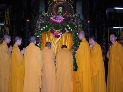 中国佛网讯据华岩寺报道:2007年5月24日(农历四月初八)是释迦牟尼佛圣诞日,重庆巴山灵境华岩寺举办盛大浴佛法会。重庆市佛教协会副会长、重庆佛学院常务副院长、华岩寺方丈道坚法师亲临会场主法浴佛。佛教四众弟子上千人参加了浴佛法会,诸佛开颜、龙天欢喜!