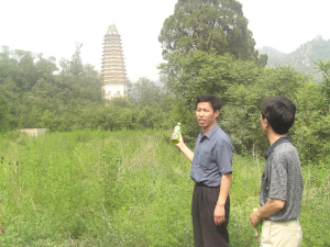 车子行驶了大概10分钟,远方的几排砖房映入了我们的眼帘。“快到了,那排房子就是砖瓦窑村的,北少林寺遗址就在这个村的界内。”张建中兴奋地说。眼看快到目的地了,同车人的情绪一下子高涨起来。