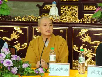 重庆市佛教协会副会长、重庆佛学院常务副院长、重庆华岩寺方丈、重庆华岩文教基金会理事长道坚法师作重要讲话