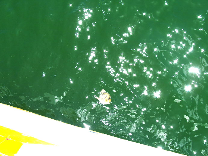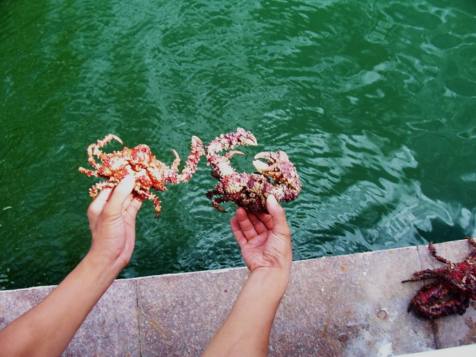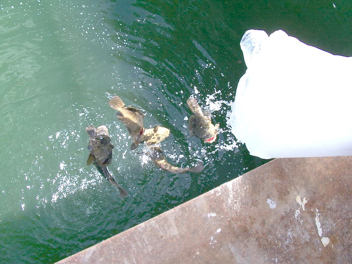 ----到凤凰岛后和保安兄弟商量直接开道码头的平台上,到放生时候将军们个个还是精神饱满,神气十足,入水动作也十分标准,如同炮弹鱼雷。估计难度达到8.0以上,且无水花----建议国家跳水队也来学习学习。