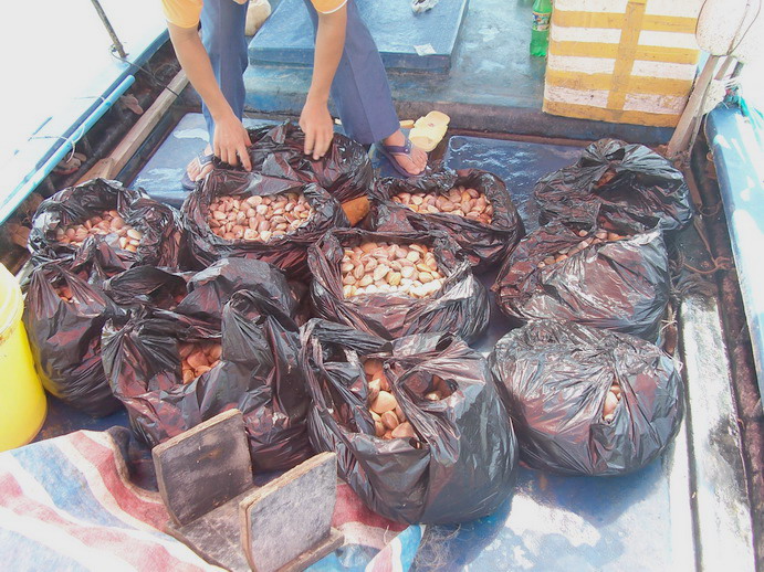 01\中等玛瑙贝 338斤X4.2元\斤=1390元 12000位