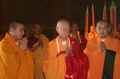 演出之前,是隆重庄严的祈福仪式,由重庆佛教协会会长、重庆佛学院院长、慈云寺方丈惟贤长老主持法会,重庆佛协副会长、重庆佛学院常务副院长、重庆华岩寺方丈道坚法师、少林寺监院延达法师、白马寺监院源玉法师、重庆白沙寺住持、重庆华岩寺监院朗光法师共祝重庆直辖十周年,祈祷世界和平,国泰民安。
