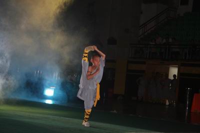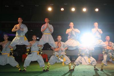 十点,在精彩的“叠罗汉”中,晚会结束,众武僧合什谢幕。