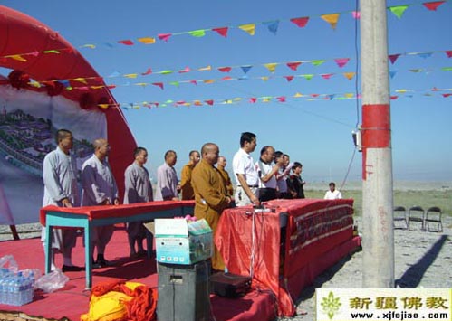 2007年8月14日,玛纳斯大佛寺新址,香烟氤氲,嘉宾光临,信众云集,隆重举行新址奠基仪式。