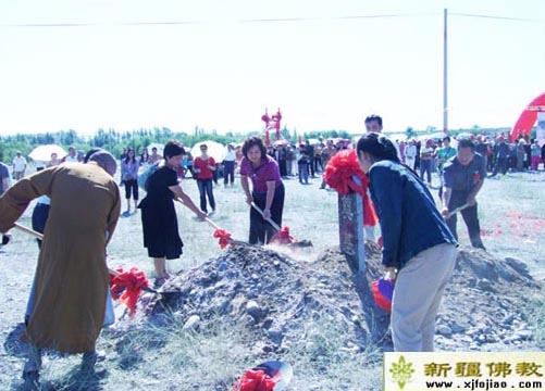 奠基仪式从上午开始,各级领导和嘉宾在仪式上分别讲话。 讲话结束后,领导嘉宾和法师还欣然与广大信众共同为新址挥锹奠基。仪式于12点多圆满结束。