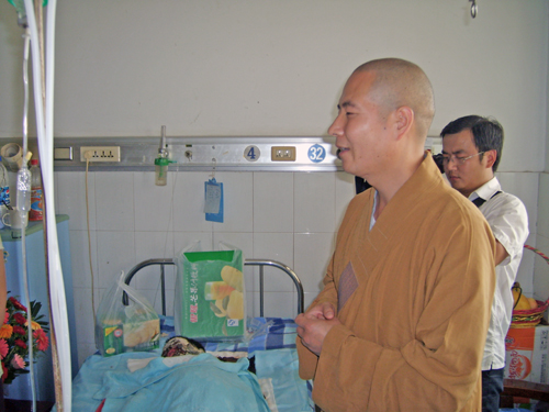 安庆市佛协会长、三祖寺住持宽容法师看望被烧伤的小朋友