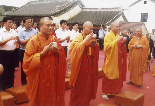 8月21日,江苏省张家港市双杏寺大雄宝殿举行了上梁仪式,江苏省佛教协会副会长、寒山寺方丈秋爽法师,昆山寺佛教协会会长、华藏寺方丈秋风法师,张家港市佛教协会副会长、香山寺方丈、双杏寺负责人法禅法师共同主持了洒净法会。