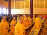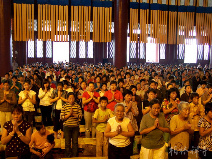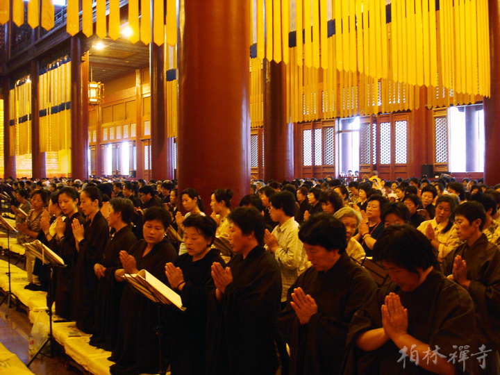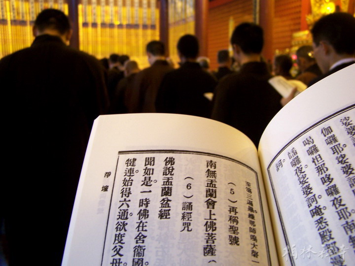 8月21日~27日,柏林禅寺隆重举行了中元节报恩法会。法会期间,每天上、下午在万佛楼拜梁皇宝忏;晚上,月悟法师在文殊阁为大众讲解《地藏经》。